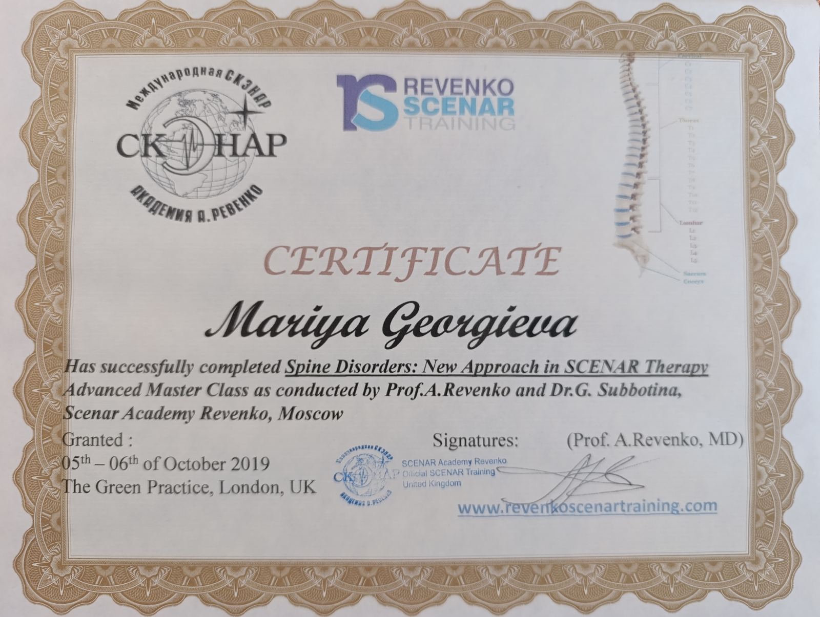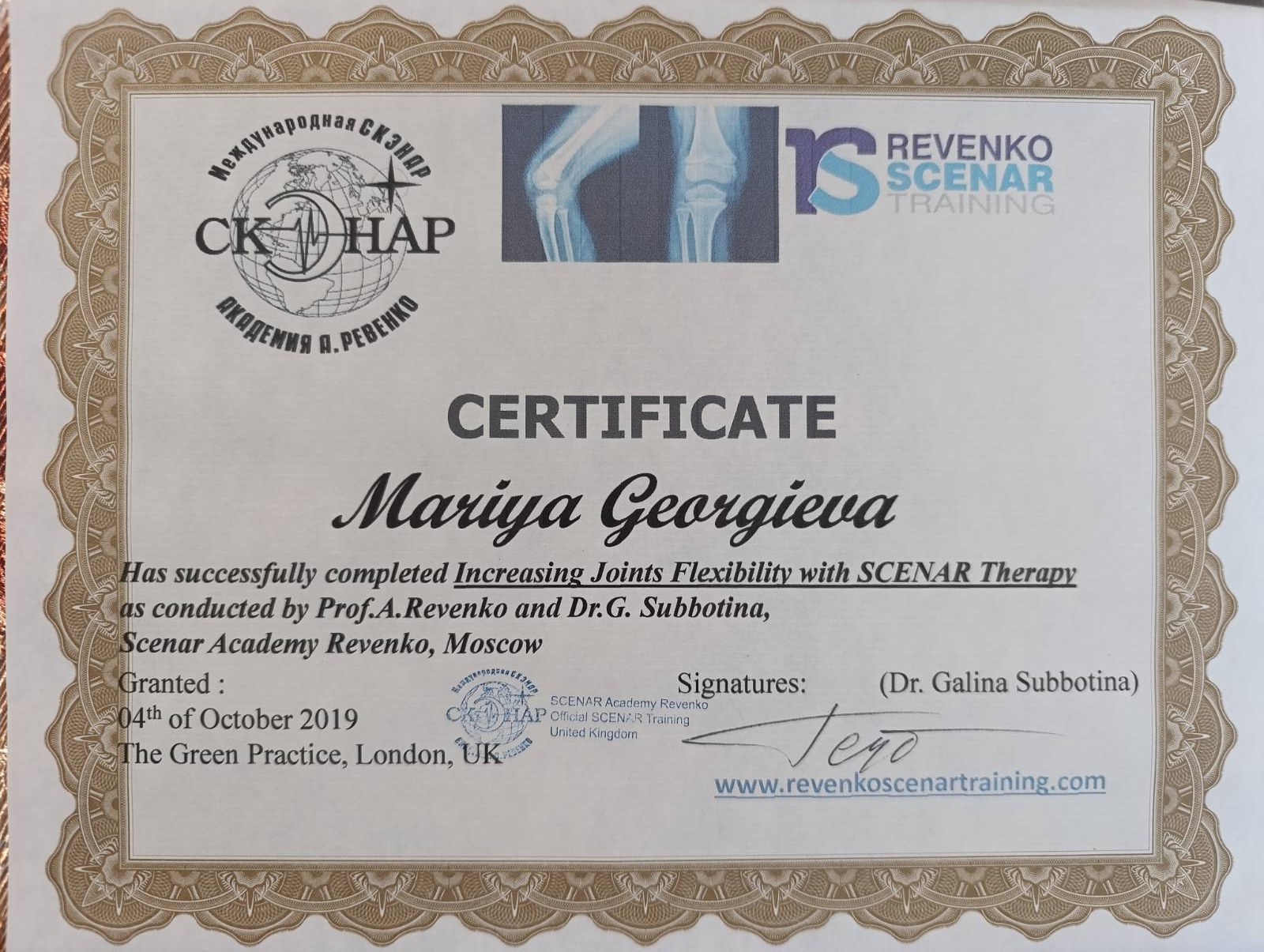 Скенар е единственият метод, който ми помогна да излекувам дискова херния, която две години лекувах с лекарства, физиотерапия и инжекции. Нервът на десния ми крак беше засегнат, изтръпваше, губеше чувствителност и беше по-слаб. Лекарите ме съветваха да оперирам хернията. Мой познат ми препоръча скенар терапия, която беше малко позната преди години в България. Благодарение на терапията вече 13 години кръста не ме боли. Спортувам активно от 5 години.